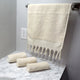 • Looped towels woven on an old style shuttled loom (not in a factory)